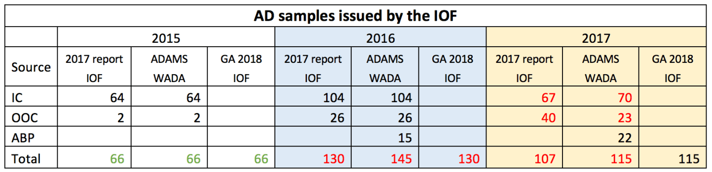 AD samples by IOF 2015-17 table