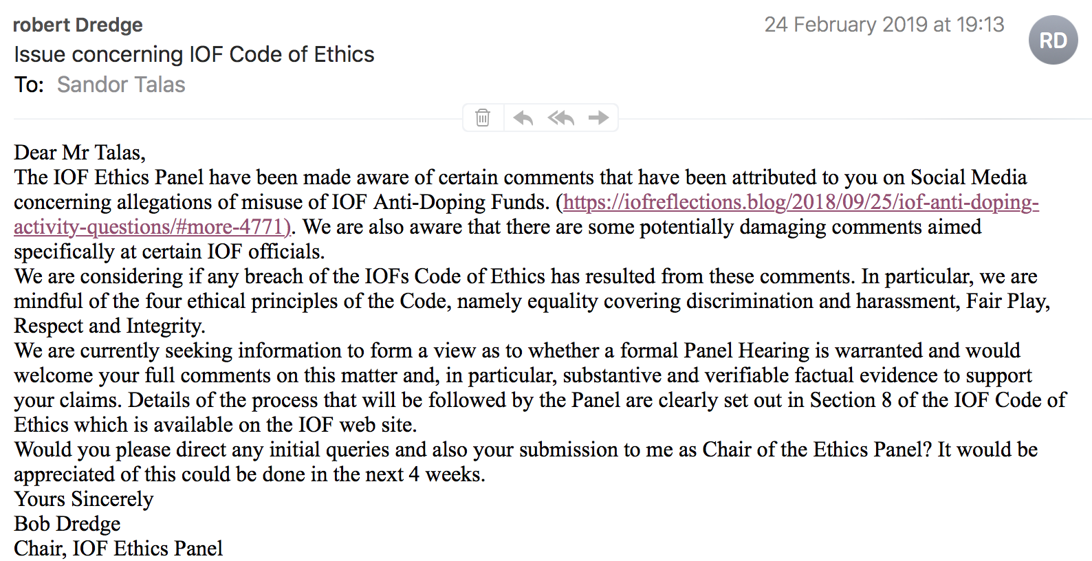 Letter from Ethics Panel – 24 Feb 2019