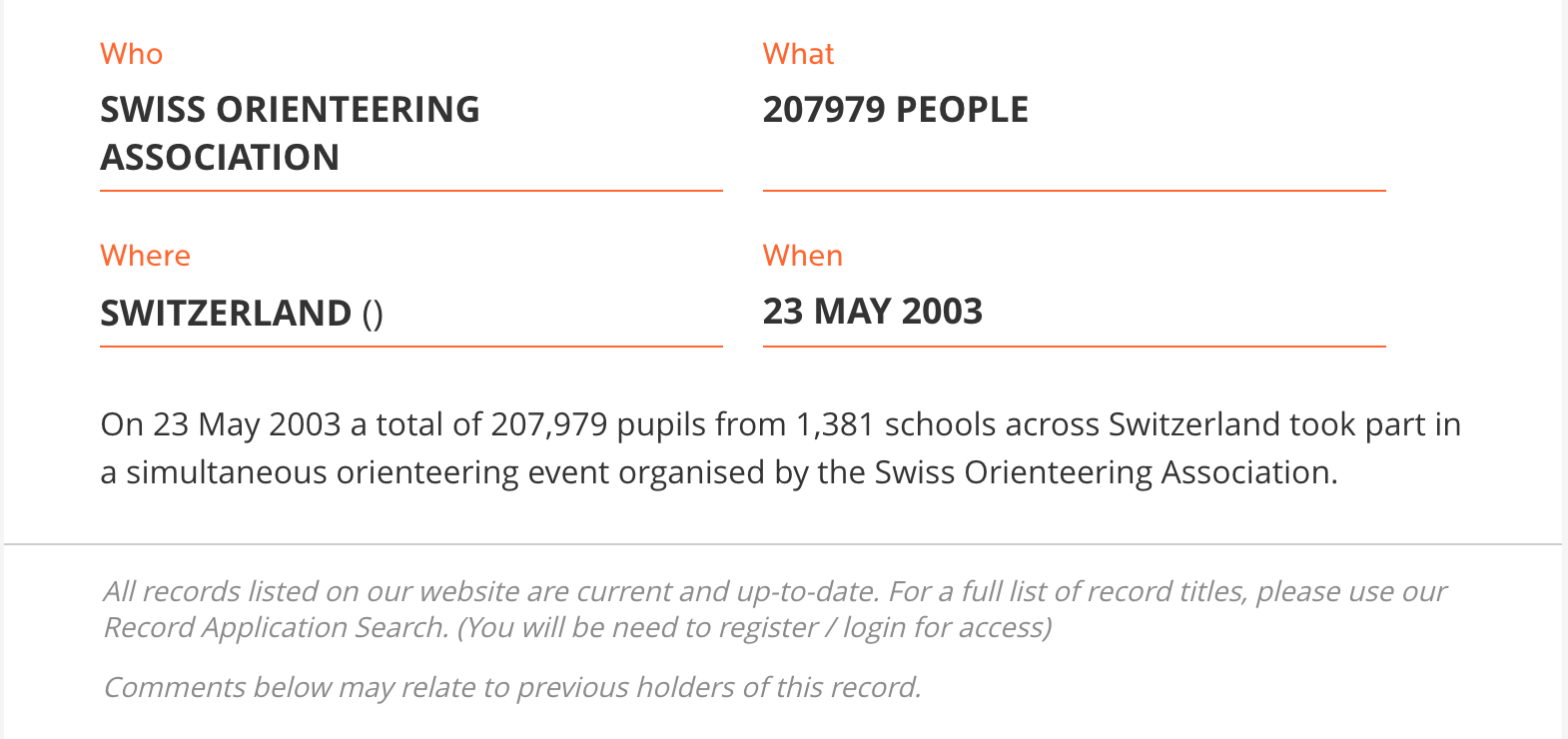 Orienteering – Guiness record
